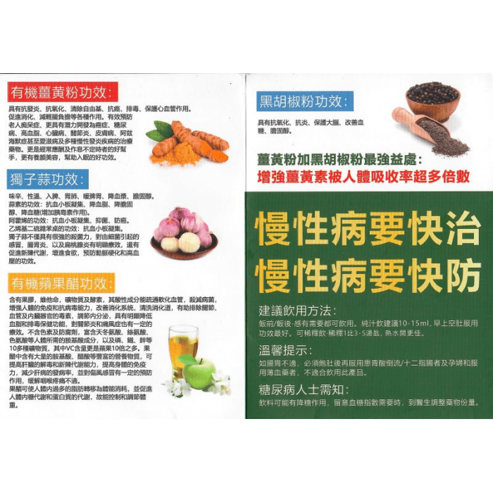 愛保健印度古方通血管蔬果汁 是一款純天然健康飲品,採用經典印度古方(蒜頭、生薑、檸檬、蘋果醋、蜂蜜)並優化加入有機薑黃粉與黑胡椒粉,專為疏通血管、促進血液循環而設計。它能幫助清除血管內積聚的毒素與多餘脂質,軟化血管壁、減少動脈硬化風險,同時顯著改善三高問題,包括降低血壓、穩定血糖及調節血脂(降總膽固醇、壞膽固醇,升好膽固醇),提升心血管健康並降低中風、心臟病等風險。每日早晨空腹飲用,即可輕鬆融入生活,享受科學驗證的天然養生效果。 原始價格:$438.00。目前價格:$430.00。
