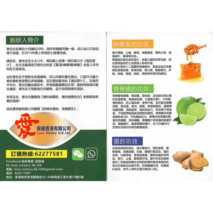 基於印度古方,香港知名的健康推廣者曾Sir進一步優化了這一經典配方,推出了愛保健蔬果汁。在原有五種成分的基礎上,加入了 有機薑黃粉 和 黑胡椒粉,進一步增強其抗炎、抗氧化和吸收效果。其中,薑黃粉和黑胡椒粉的結合能顯著提高薑黃素的吸收率,增強血管保護和抗發炎效果。